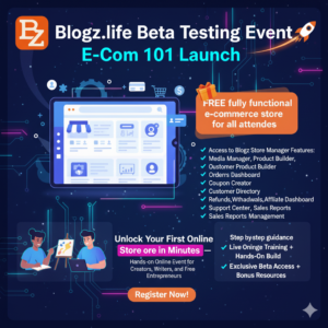 Unlock Your First Online Store in Minutes — Free During Beta Join us for the official Blogz.life E-Com 101 Beta Testing Event, a hands-on experience designed to help creators, writers, and entrepreneurs launch their first online store with zero stress and zero cost. This event introduces the newest e-commerce tools built directly into the Blogz.life […]